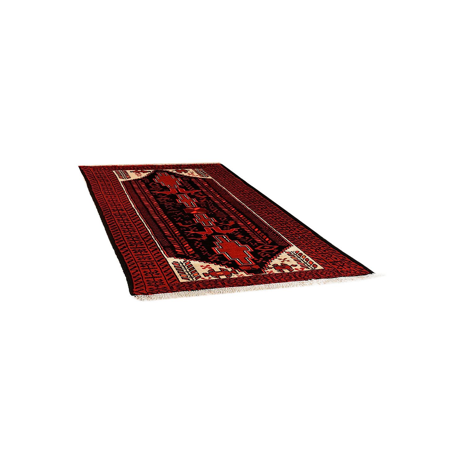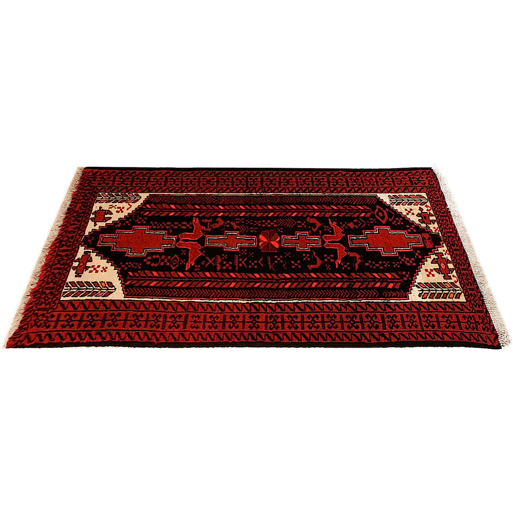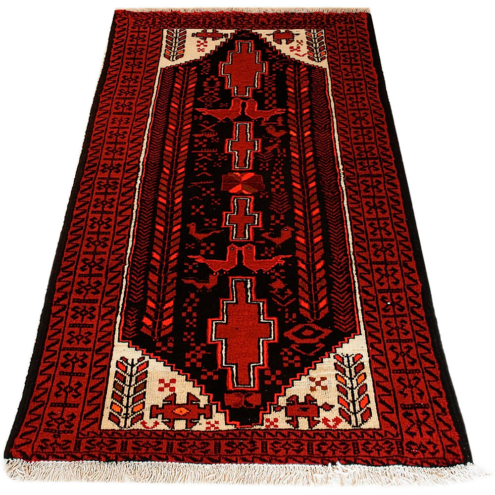 Baluch (or Baluchistan) is a region that includes the Baluchistan province in Pakistan as well as parts of Iran and Afghanistan. These very durable carpets are called Baluchi / Beluchi / Balochi since they are made in this border region; they are usually made of 100% wool and in small sizes, and feature dark red and brown colours and repetitive forms, usually the "gkiua" pattern.