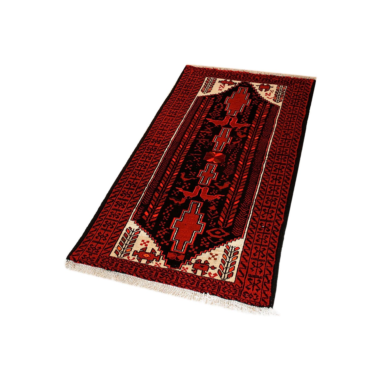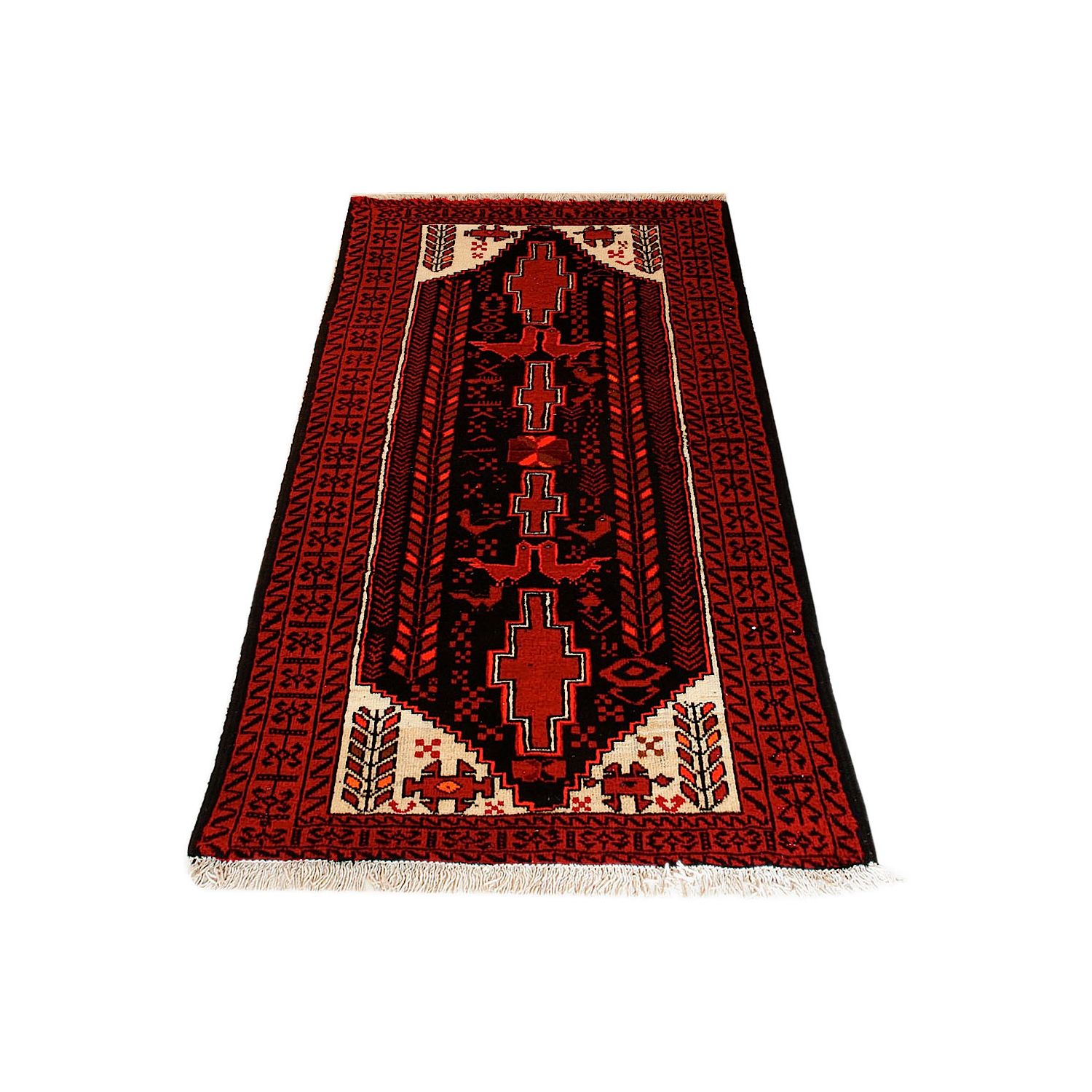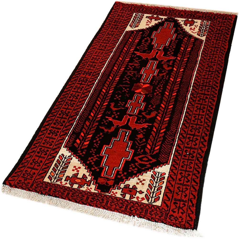 Baluch (or Baluchistan) is a region that includes the Baluchistan province in Pakistan as well as parts of Iran and Afghanistan. These very durable carpets are called Baluchi / Beluchi / Balochi since they are made in this border region; they are usually made of 100% wool and in small sizes, and feature dark red and brown colours and repetitive forms, usually the "gkiua" pattern.