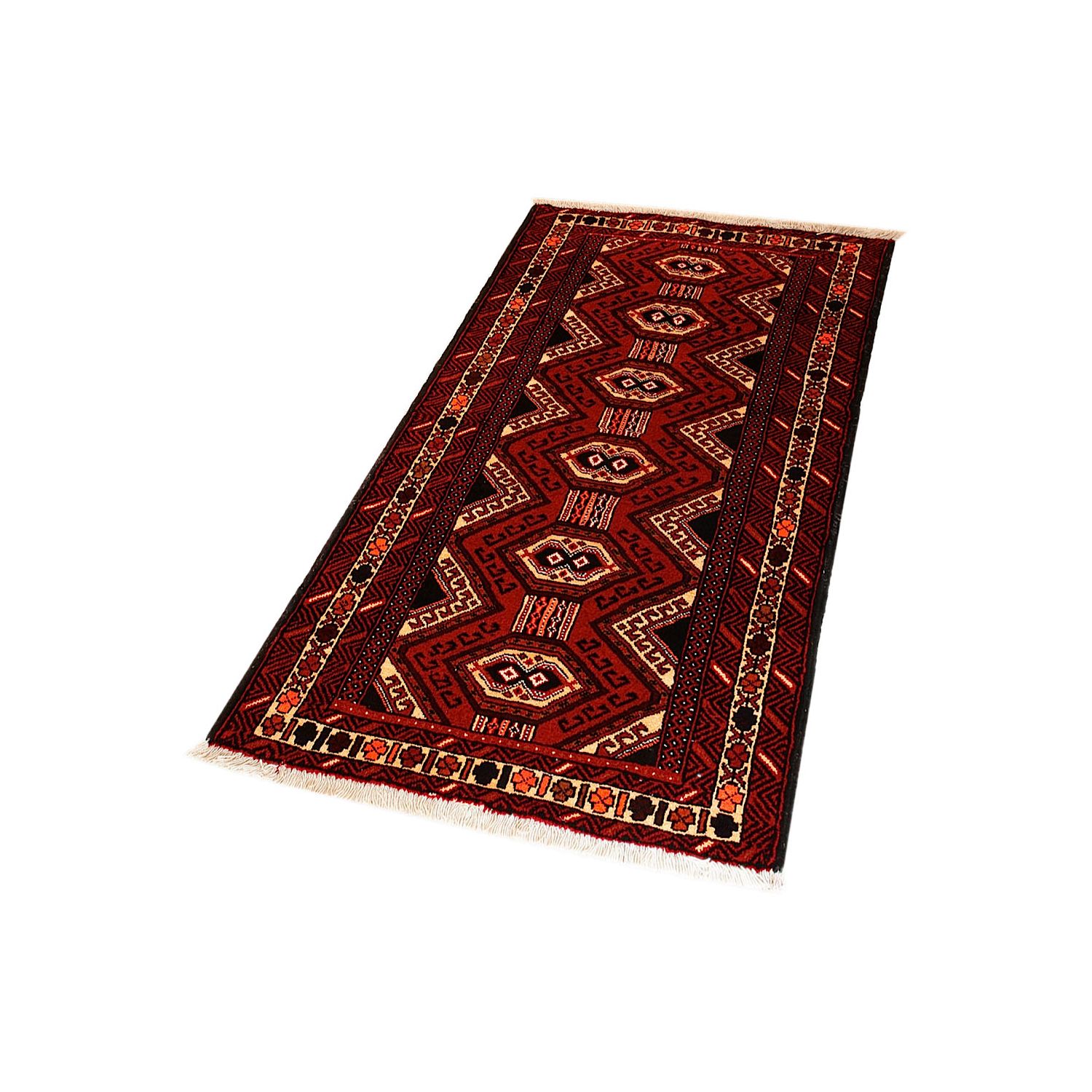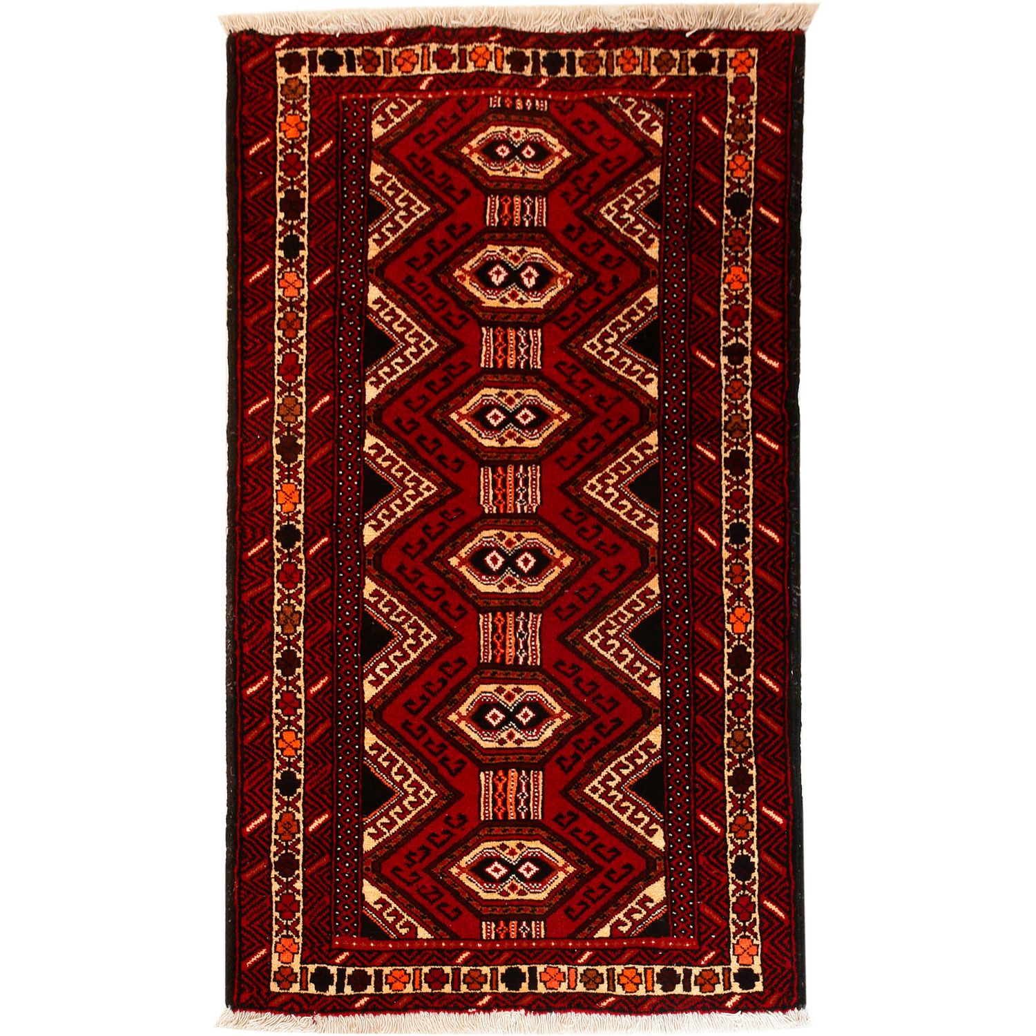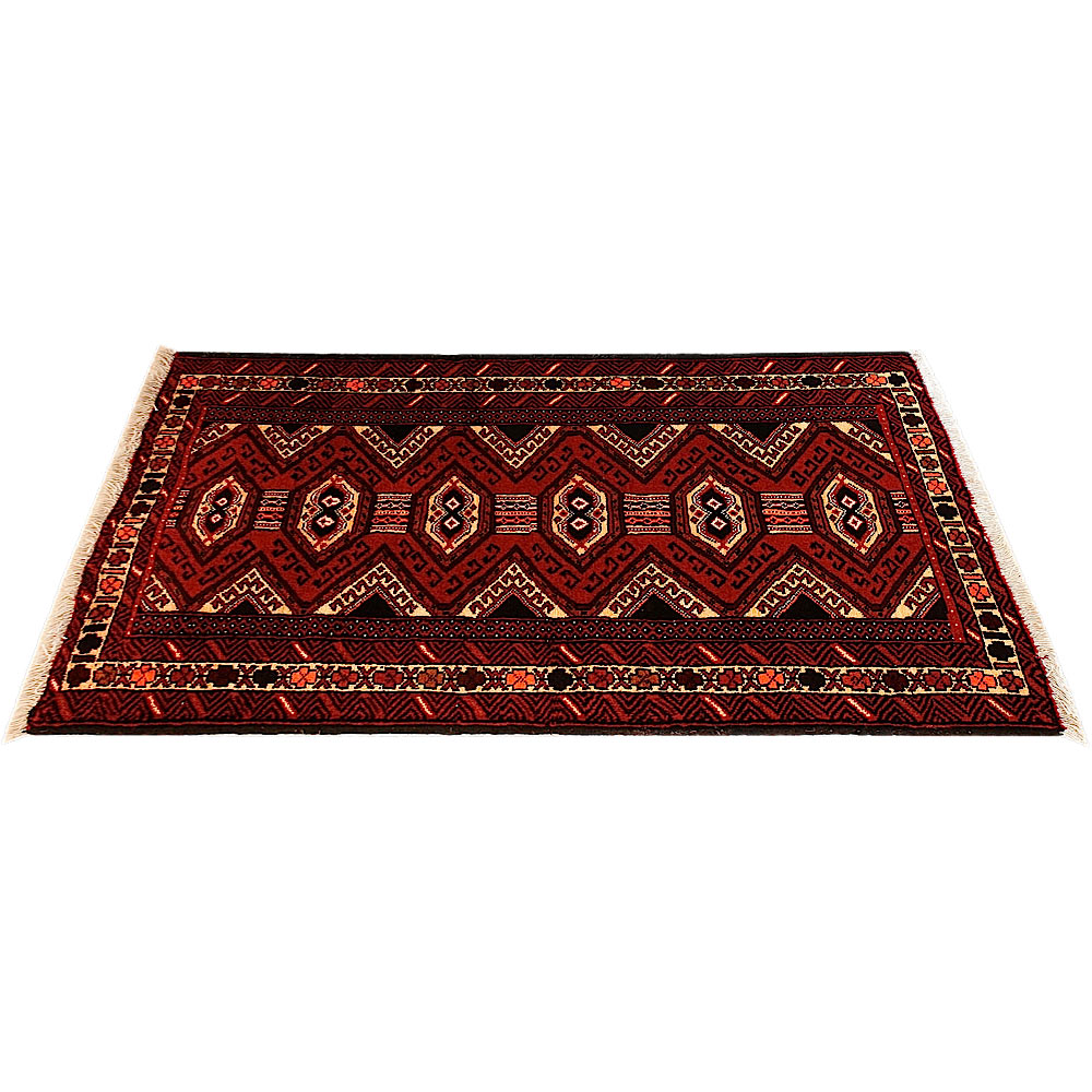 Baluch (or Baluchistan) is a region that includes the Baluchistan province in Pakistan as well as parts of Iran and Afghanistan. These very durable carpets are called Baluchi / Beluchi / Balochi since they are made in this border region; they are usually made of 100% wool and in small sizes, and feature dark red and brown colours and repetitive forms, usually the "gkiua" pattern.