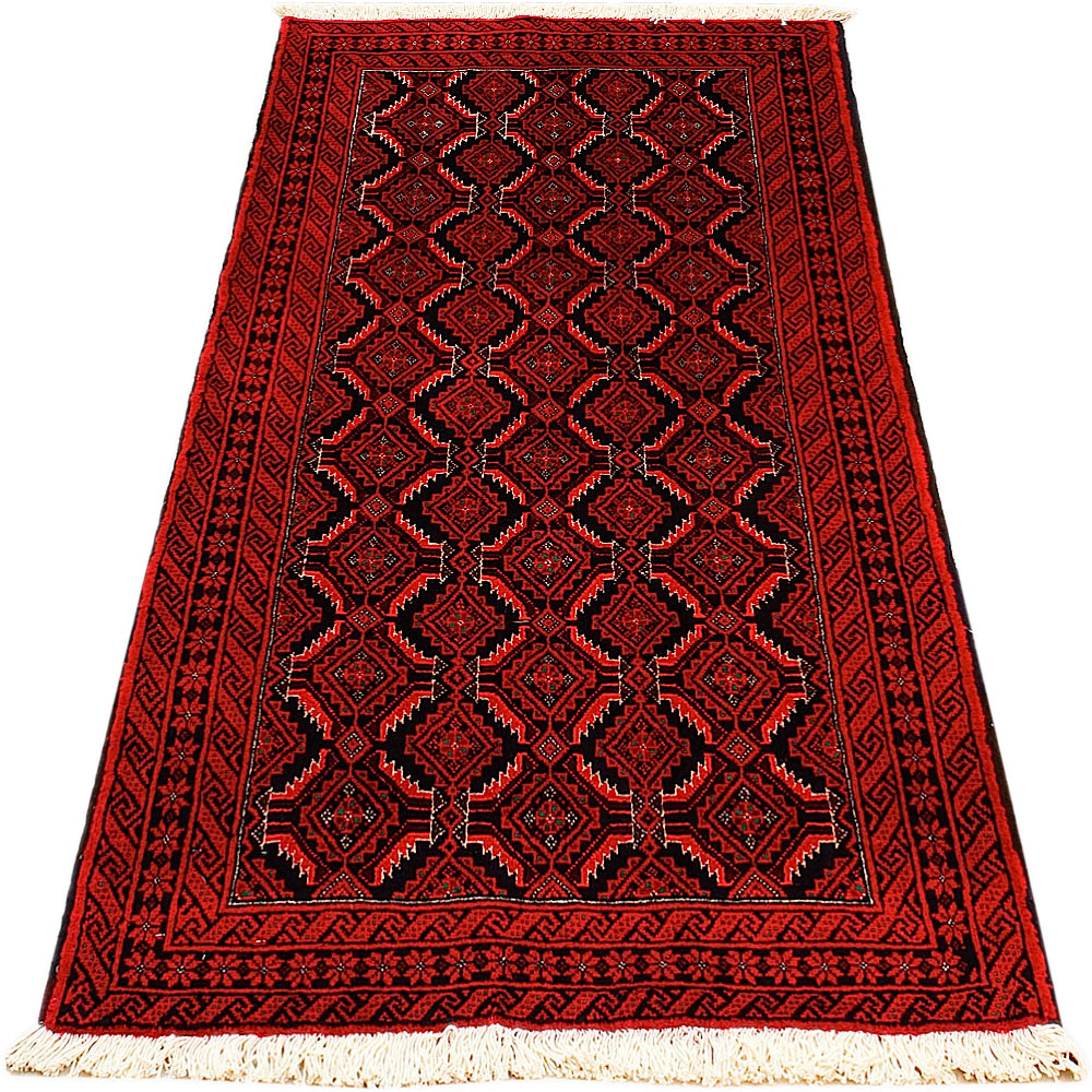 Baluch (or Baluchistan) is a region that includes the Baluchistan province in Pakistan as well as parts of Iran and Afghanistan. These very durable carpets are called Baluchi / Beluchi / Balochi since they are made in this border region; they are usually made of 100% wool and in small sizes, and feature dark red and brown colours and repetitive forms, usually the "gkiua" pattern.